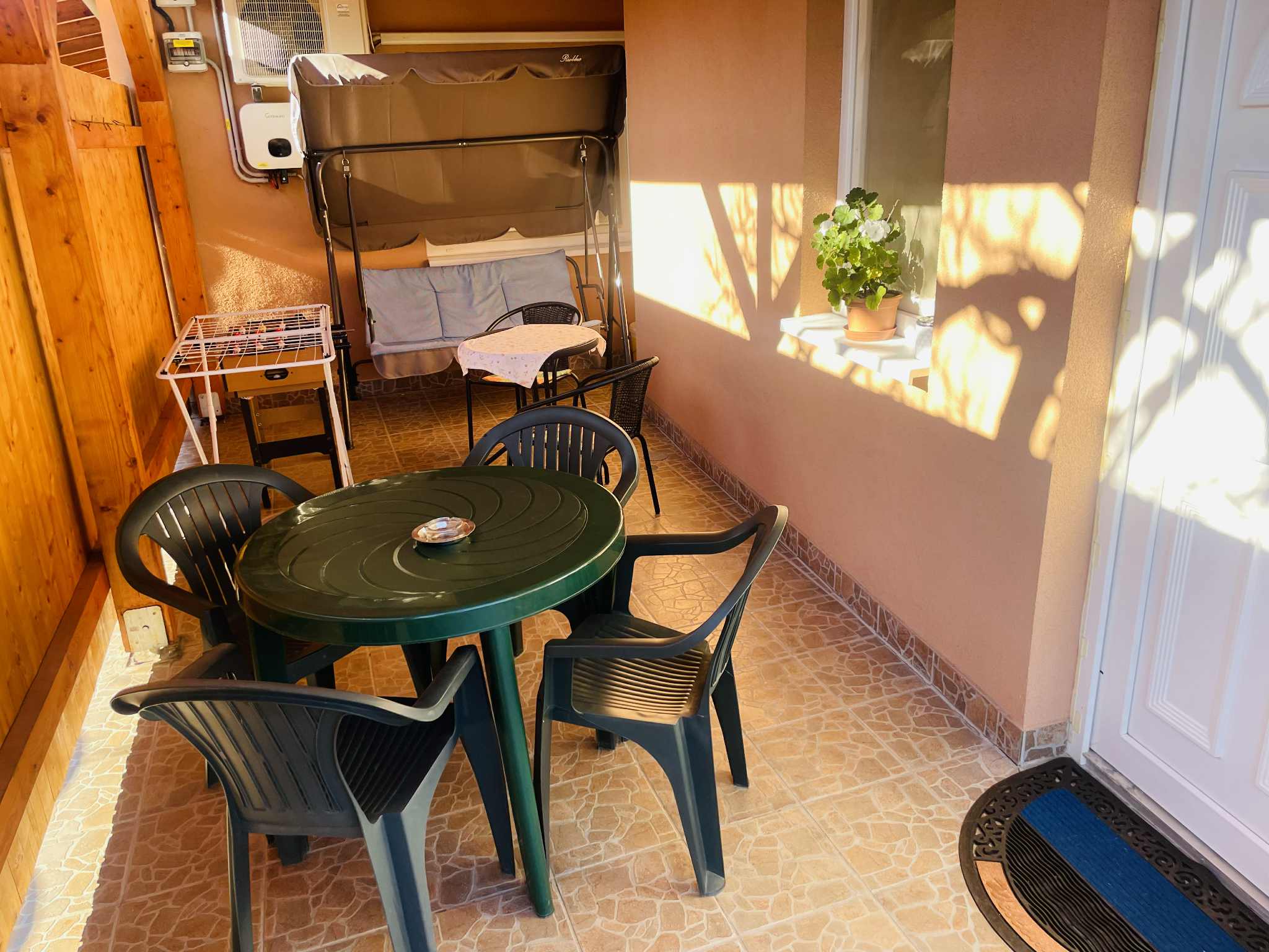 Földszinti terasz: kerti bútor, hintaágy, asztali foci Az udvaron nyársalási, bográcsozási lehetőség Ingyenes parkolási lehetőség az udvarban.
