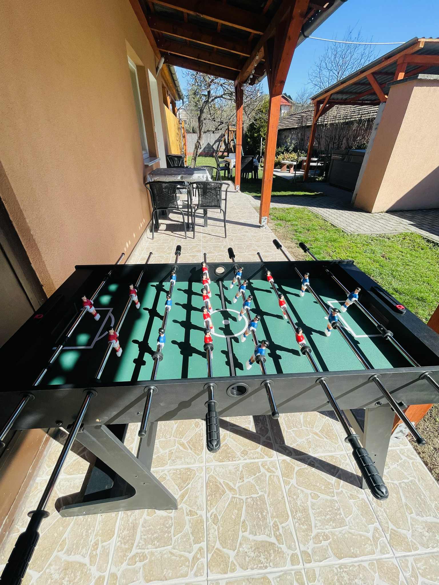Fedett terasz, valamint kerti bútorokkal, nyársalóval, bográcsozóval kialakított parkosított udvar. A szabadidő kellemesebb eltöltéséhez, asztali foci, tollaslabda és kültéri pingpongasztal áll rendelkezésre. Ingyenes parkolási lehetőség az udvarban.